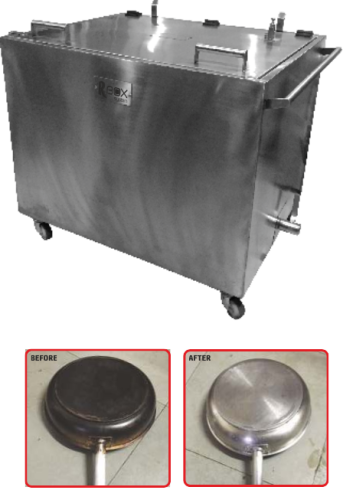 - Decarbonizes practically any kitchen ware that can fit in the system